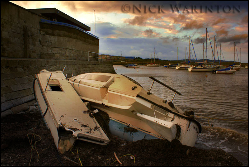 Wrecked Catamaran after a Storm, Bray Harbour, Co. Wicklow, Ireland.