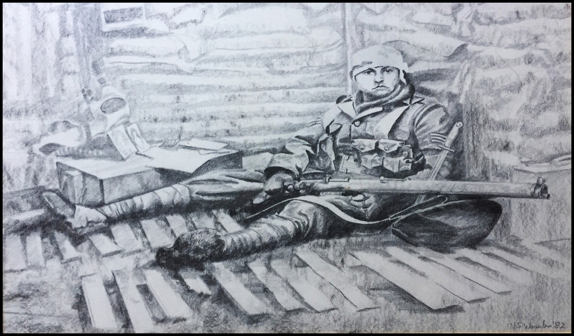 Shell shock, 1982. Pencil on paper 36 x 21 cm. Currently not for sale